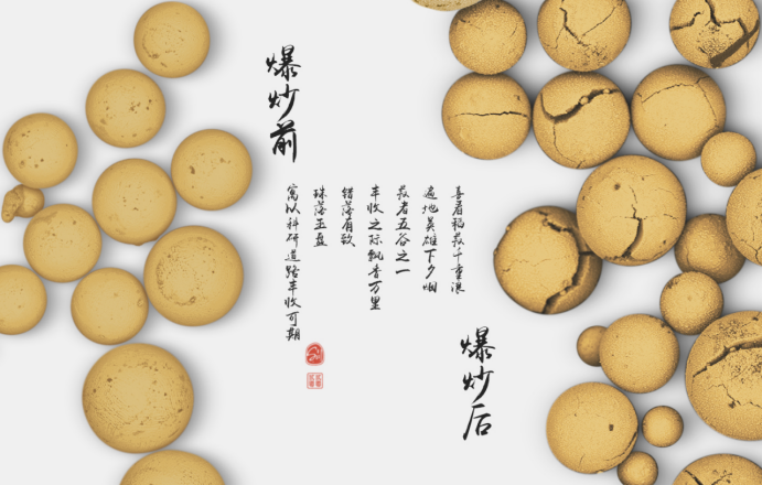 一等奖作品简介:将316不锈钢粉体的原始电镜照片提出并单独调色使之呈现出金黄色,与原始质感很好地契合,宛如盘中珍珠一般饱满温润的黄豆,氮化处理开裂后又似黄豆烹炒至成熟龟裂,酥脆香口的画面不禁使人垂涎欲滴。此作品生动形象地描绘了一幅传统民间美食的精美画卷,菽类作为我国传统五谷之一,亦是传统文化与勤劳智慧的体现;作品托物阐释了科研工作需要“种豆南山下”的辛勤耕耘的道理,也表达了作者对科研道路取得丰收的殷切期待和美好祝愿。