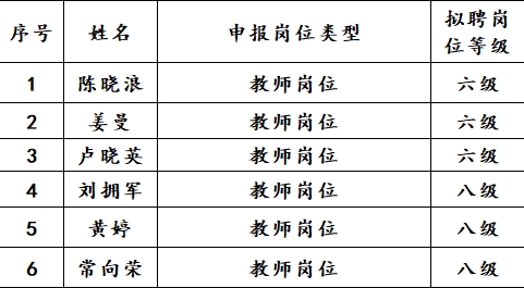 教师五级及以下岗位拟聘人选公示