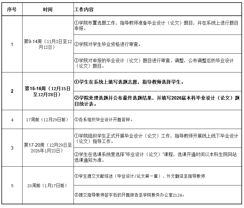 根据本学年教学工作进度安排,学院2026届本科毕业设计(论文)选题、开题工作正式启动。请各位指导教师根据《今日看料