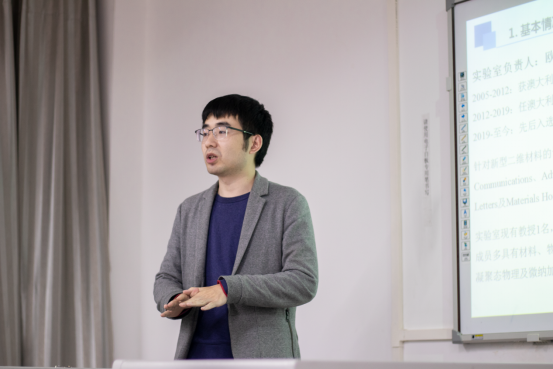 (卓越班)学术导师宣讲会于X9303正式举行。首先进行宣讲的是冷永祥教授,冷教授从研究内容入手,向大家简要介绍了离子束表面改性研究小组。随后,冷教授针对研究生的学习和生活为同学们进行了讲解。冷教授提到,在学习上同学们要群策群力、集思广益,仰望星空、脚踏实地,博观约取、厚积薄发。除了学习以外,冷教授也告诉同学们,要有丰富的课余生活。在最后,冷教授分析了近三年毕业生的就业情况,让同学们对自己的未来去向有了新的认识。