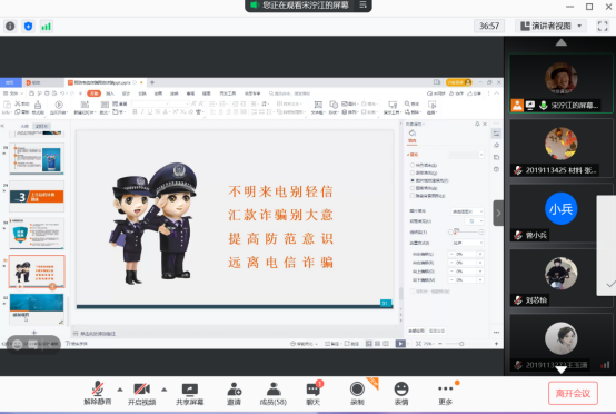 之后,讲述了识别电信诈骗的方法及有效预防电信诈骗的措施,警示大家对电信诈骗案件的重视,提高警觉性,在遭遇此类案件能保持镇定。