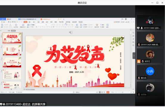 班会第二个主题由高分子二班的孟宏达同学为大家介绍关于艾滋病的相关知识。班会中从艾滋病的基本知识、传播途径,以及预防艾滋病的措施等方面进行讲解,提高大家对艾滋病相关知识的储备,同时作为新时代的学生要养成正确的价值观,正确对待艾滋病。最后孟宏达同学还给出了十条预防艾滋病的小提示,呼吁同学们时刻警惕。