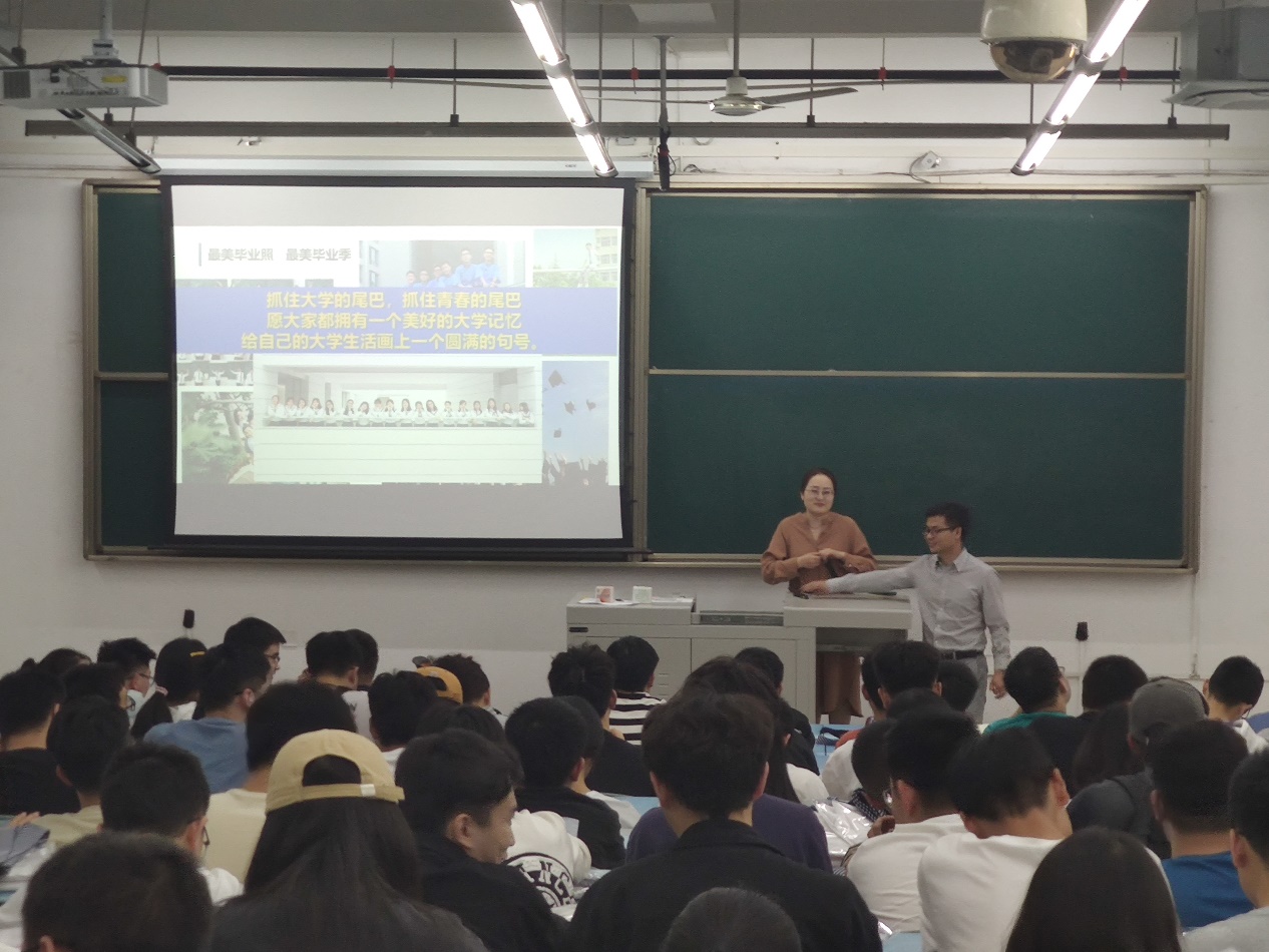 最后,两位老师对同学们做出了“抓住大学的尾巴,抓住青春的尾巴,愿大家拥有一个美好的大学回忆,给自己的大学生活画上一个圆满的句号!”的祝福。