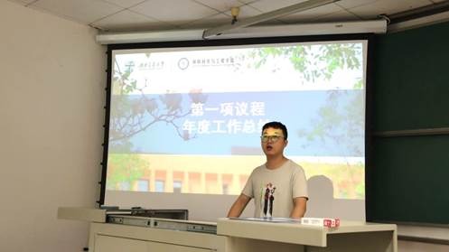 本次会议包含六项议程。会议的第一项议程是任浩同学对2020-2021年度研究生会的工作进行述职报告,为整个学年研究生会工作做出年度总结,对各项事务的顺利进行表示祝贺,对所有研究生会干部及干事的大力支持和辛勤付出表示感谢,并且对未来工作进行了展望。