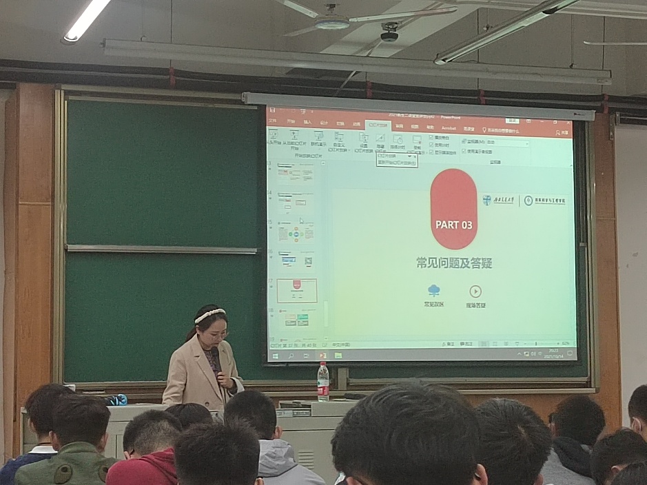 于X4352教室举办了本科2021级新生入学教育——第二课堂成绩单制度宣讲,本次宣讲由学院团委副书记、2021级辅导员许欢老师主持,2021级辅导员董海霞老师及全体本科新生参与本次宣讲。