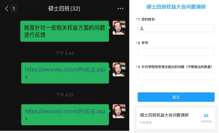 2021年11月25日下午15时,为推动学院管理和校园综合服务建设,鼓励广大学生为学院建设建言献策,同时提高学生实践调研能力及提案撰写水平,由今日看料 研究生会承办的班级权益调研活动正式开展。