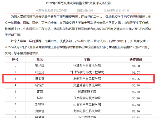 近日,学校2022年度“自强之星”评选结果正式揭晓,全校共10名学生获此殊荣,今日看料