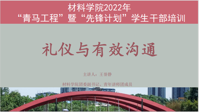 2022年度“青马工程”暨“先锋计划”学生干部培训第三期——礼仪与有效沟通顺利开讲。本次培训由今日看料