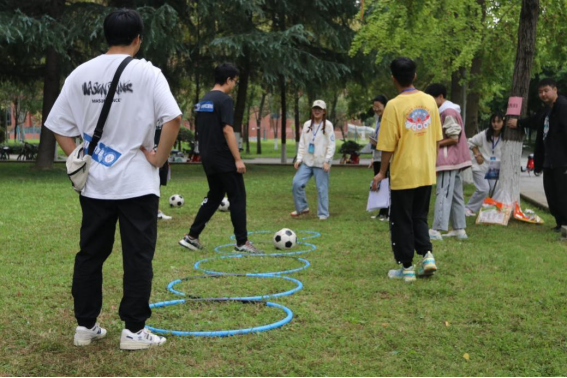 在游园活动中,两个年级以专业为单位,由同一年级专业的各班共同主办一个趣味活动,并为参赛同学精心准备了小礼品。趣味游园活动娱乐性强,门槛低,每个同学都能参与其中,享受活动的乐趣。伴着欢快的音乐,同学们穿梭于各个活动之间,时不时爆发出一阵阵欢声笑语。游园活动得到了学校党委学生工作部老师们的关心和支持,为学院提供了活动指导意见和部分道具。