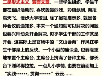 首先,章春军在会议上致辞。他在致辞中明确指出,大学生应培养政治意识,作为学生干部应该具备廉洁奉公的精神,切忌官僚风气。青年时代是最朝气蓬勃的时代,大学时期是学术研究,文化传承,人格培养的最好时期,大学生要扣好人生的第一枚扣子,要摆脱冷气、抵制不良风气,要有蓬勃向上朝气。