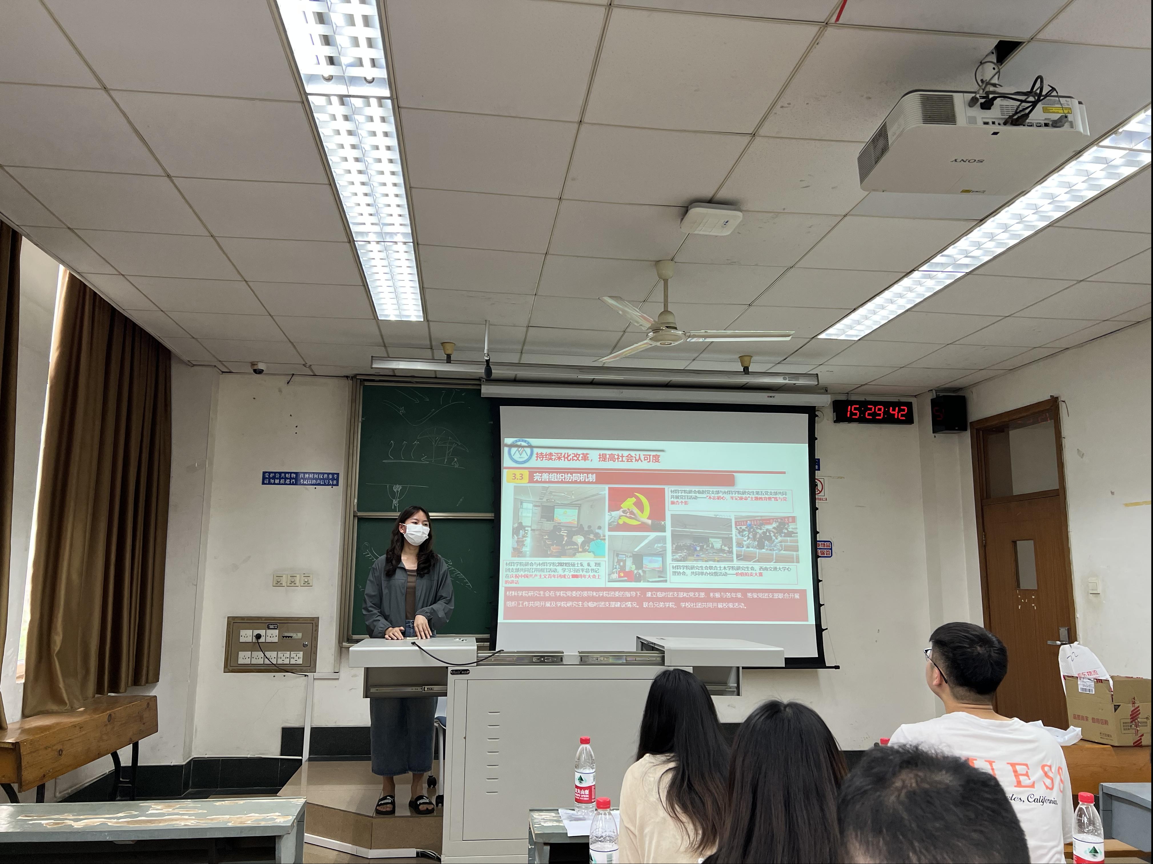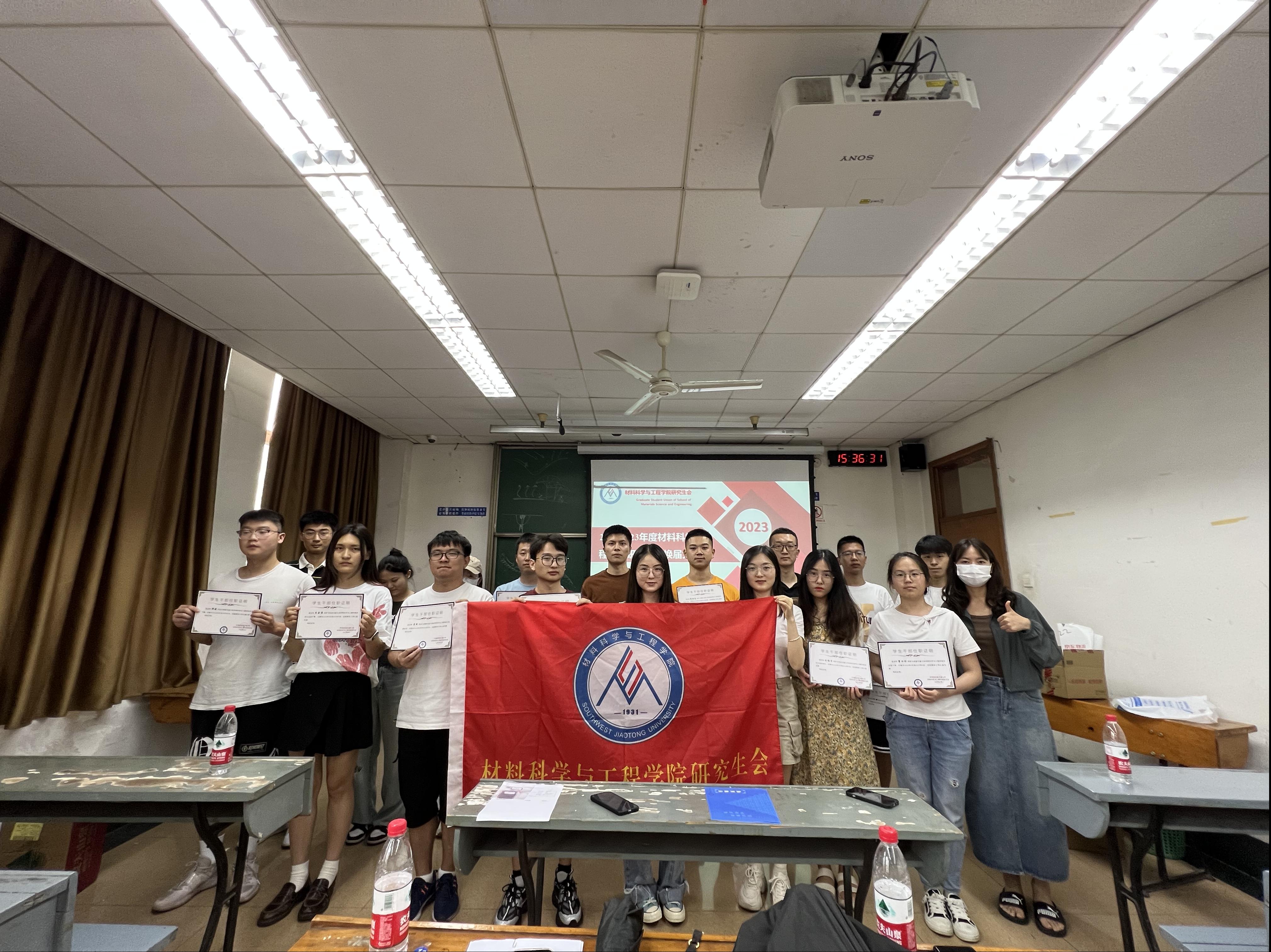 研究生会干部换届大会在九里校区逸夫馆J4421顺利召开。材料研究生会指导老师廖妙威及研会全体成员参会。会议由研会主席王舒一主持。