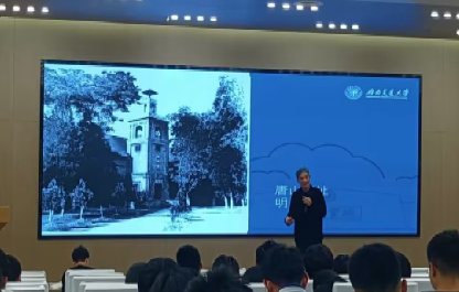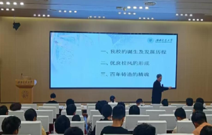 首先,梁老师以深入浅出的方式向大家详细介绍了学校的诞生和发展历程,从初创渝关、复校唐山、搬迁峨眉、定址蓉城、扩建犀浦等方面细述了交大自建校以来127年的辉煌校史。他表示,学校成立于19世纪末,始终坚守着为国家培养优秀人才的使命,面对困难和挑战,学校师生们不畏艰辛,一直坚持不懈地努力奋斗,才有了如今的交大。