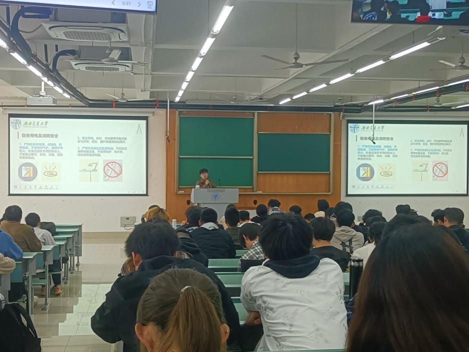 最后,熊老师再次强调宿舍安全的重要性,要求同学们全员注册蓉城反诈小程序,并进行本科教育教学审核评估工作宣讲动员。