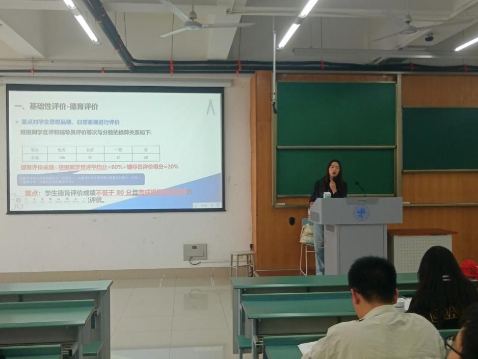 本科生综合素质评价办法》。综合成绩由基础性评价和发展性评价构成,其中基础性评价包括德育评价、智育评价、体育评价、美育评价和劳育评价,发展性评价包含学生干部加分、科创竞赛加分等。综合素质评价排名关乎评奖评优,向思林学姐鼓励大家努力学习,认真做好学业规划,以优异的成绩来为自己的大学生活争光添彩。