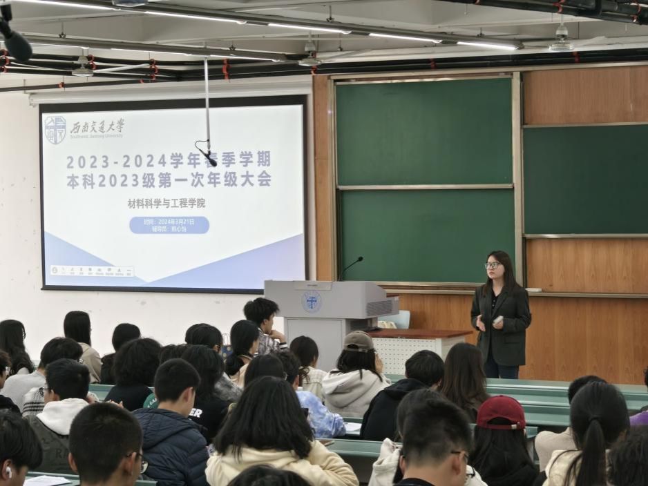 本科2023级开展2023-2024学年春季学期第一次年级大会。大会邀请了本科2020级辅导员郑纪伟,本科2023级辅导员熊心怡、年级助理向思林、盛人国、张岩松和全年级同学参会。会议由辅导员熊心怡主持。