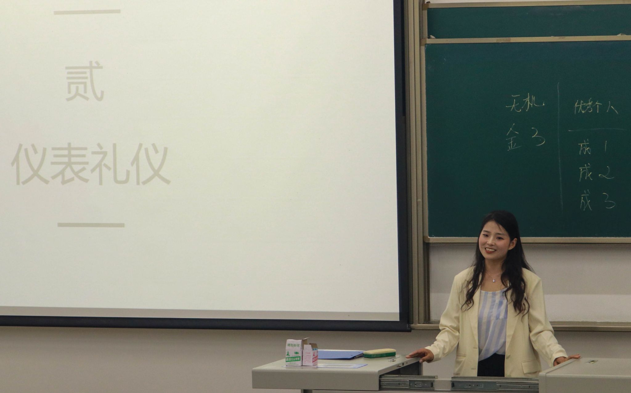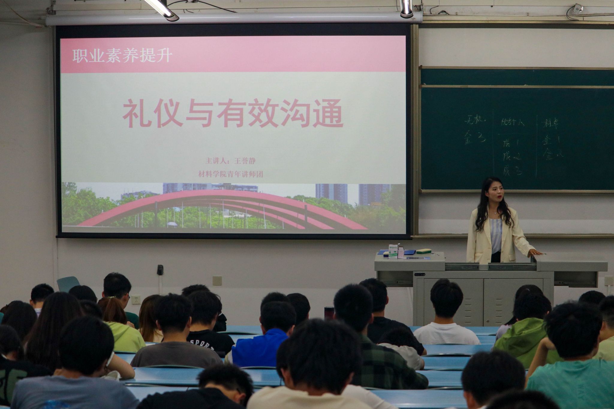团委书记、青年讲师团成员王誉静为学生开展了“礼仪基础”教学。