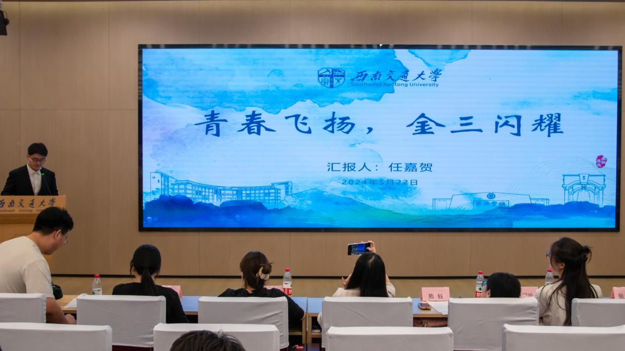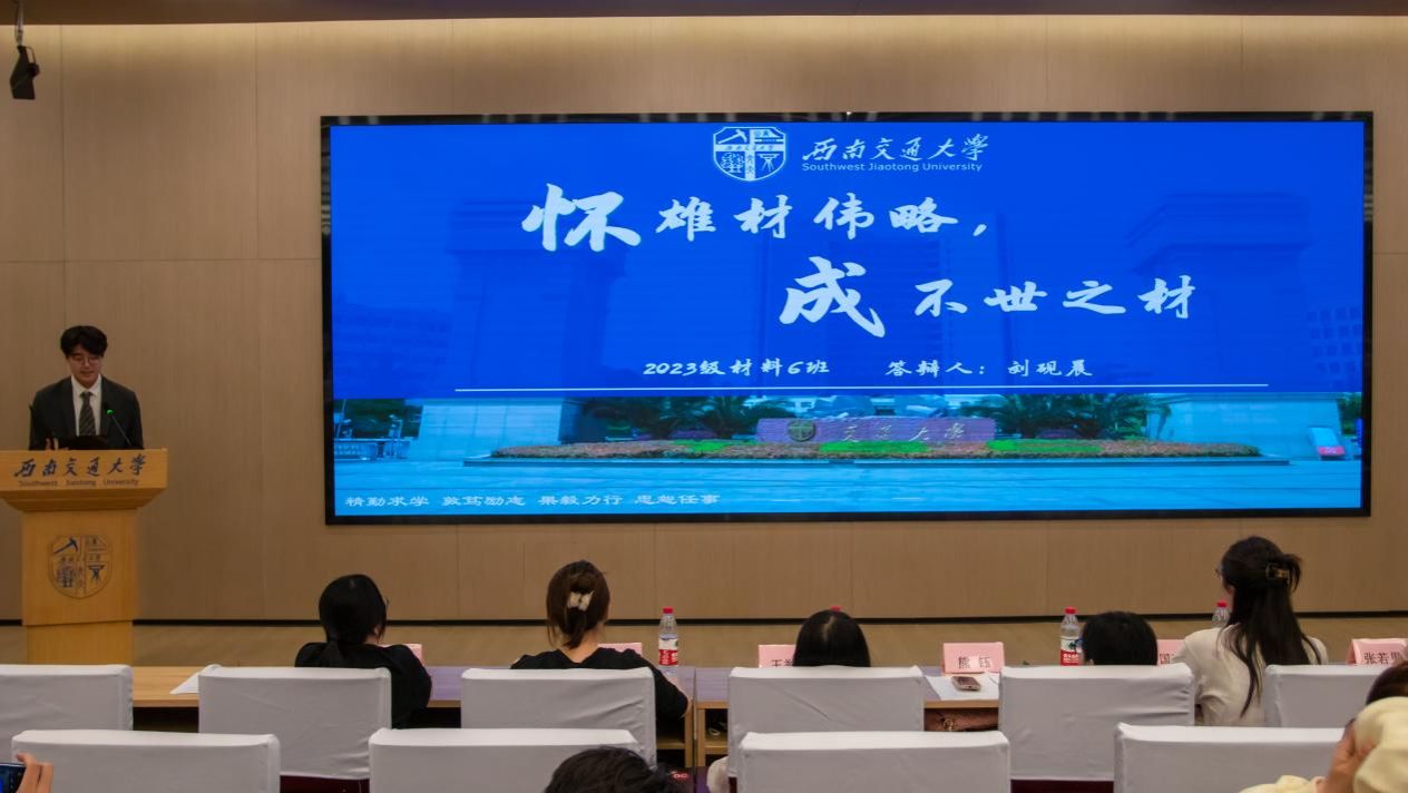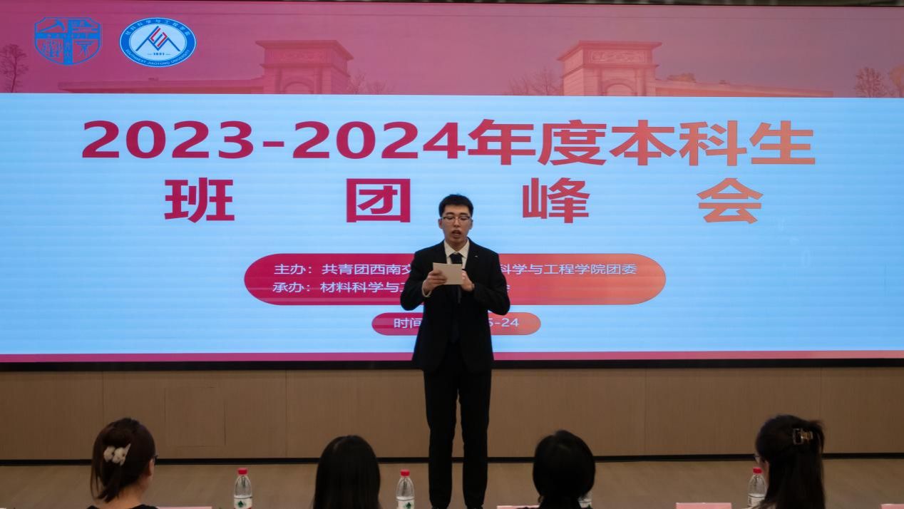 于图书馆2号报告厅开展2023——2024年度“班团峰会”先锋班集体答辩活动。学院党委副书记熊钰、2023级材料7班班导师赵小军、团委书记王誉静,本科2022级辅导员张琬祺,本科2021级辅导员张若男,本科2020级辅导员钟国玲,本科2023级辅导员熊心怡出席活动。
