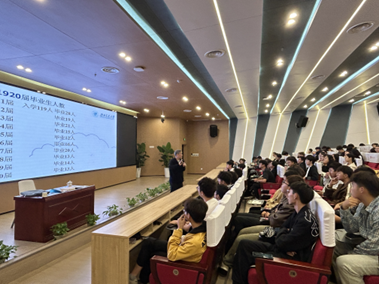 在讲述校史的过程中,梁教授还特别强调了学校优良校风的形成。以唐院五老为典范,一代代交大人秉持着“竢实扬华,自强不息”的精神,严谨治学、刻苦钻研。这种精神不仅是学校的宝贵财富,更是每一位交大学子应该传承和发扬的品质。梁教授幽默风趣的语言、深入浅出的讲解方式,赢得了新生们的阵阵掌声,现场气氛热烈。最后,梁教授以一首诗结束了他的讲座: