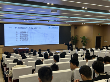 初创渝关的艰难与坚定。1896 年,学校的前身山海关北洋铁路官学堂成立,成为中国第一所铁路高等学校,开启了我国铁路高等教育的先河。梁教授通过一张张珍贵的历史照片和详细的史料,让新生们仿佛穿越时空,看到了当年前辈们为了学校的创立所付出的努力与汗水。