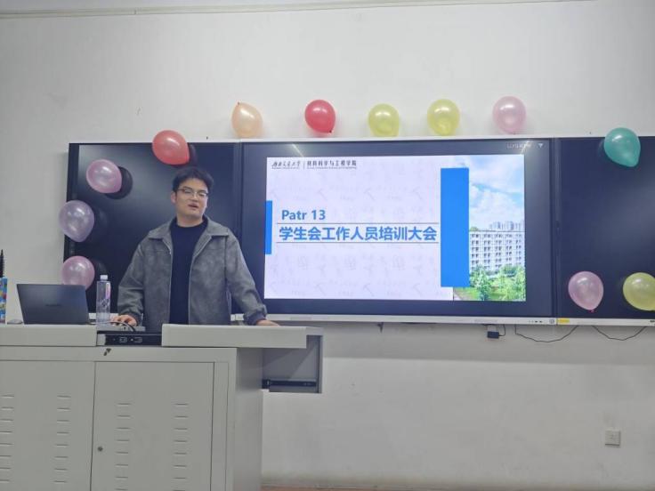 学生会执行主席白晓冉做2024-2025学年学生会第一次工作人员培训。他强调,作为学院与学生之间的桥梁,学生会成员需保持高度的政治敏感性,紧跟时代步伐,确保工作方向的正确性;同时,要发挥先锋模范作用,以积极进取的态度引领校园文化的正向发展;日常中,要紧密联系广大学生,倾听他们的声音,解决他们的实际困难,真正落实全心全意服务同学的宗旨。