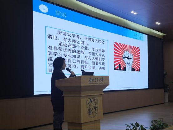 会议最后,许欢老师以“安全无小事”为主题开展宿舍安全教育。通过展示近期高校宿舍安全事故案例,许欢老师重点强调了违规电器使用、私拉电线、卫生隐患等问题,同时关注同学们的心理健康,提醒同学们防范电信网络诈骗。