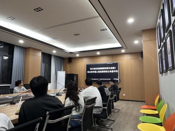在学习过程中,支部首先组织成员观看《长津湖》《觉醒年代》等经典影视作品的精选片段。荧幕上,革命先烈在冰天雪地中坚守阵地、为民族解放抛头颅洒热血的场景,让在场党员深刻感受到抗战时期中国人民“不怕牺牲、顽强抗争”的精神力量,直观体会到抗战精神的时代温度。