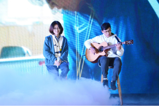 吉他空灵之声响起,一曲略带忧郁气息的《年少有为》由董峻平与鄔竣涛深情演绎,同学们沉浸在淡淡的忧伤中,不断回味过往。