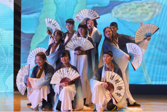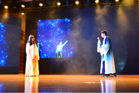之后,由材一同学们带来的中国风节目《中国舞》和由王开宇同学带来的歌曲独唱《山海》相继亮相舞台,整个晚会高潮迭起。