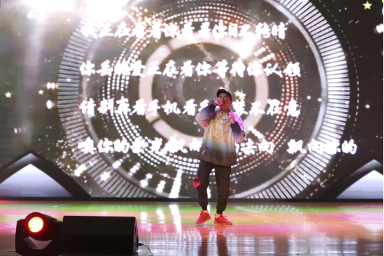 经历了片刻沉静后,现场又一次被宋子晴等同学带来的舞蹈《dududu》燃爆,劲爆的音乐,舞动的身姿,尽显青春风采。而徐天培同学的单人rap《目不转睛》亦激情四射