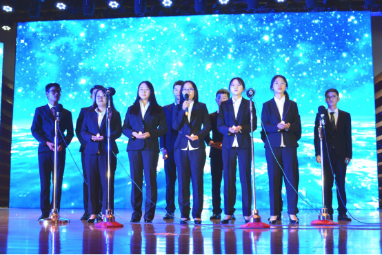 最后,由学工组的各位辅导员老师登台献唱歌曲《没什么不同》,锐意进取的歌词和激昂和谐的声乐引得全场大合唱。