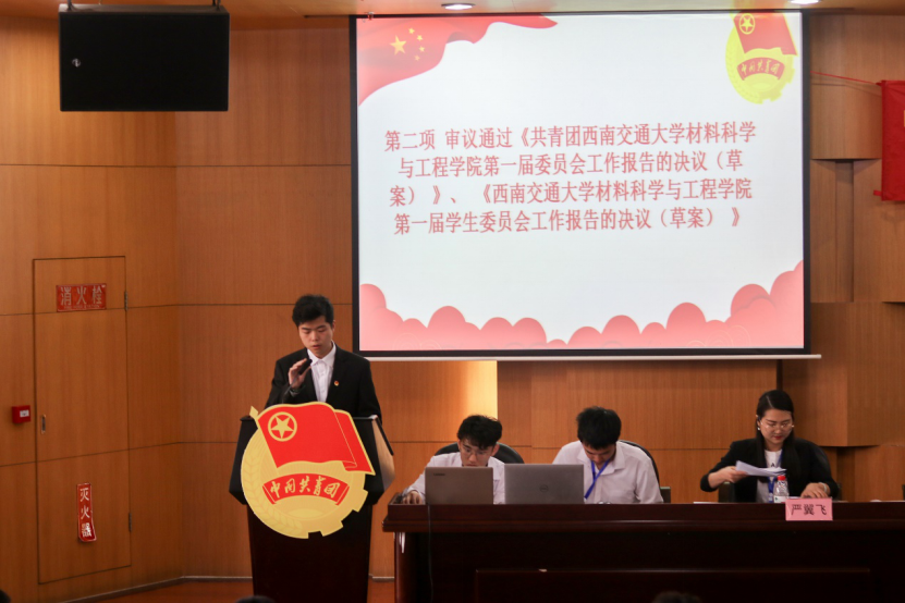 材料科学与工程学院第一届学生委员会工作报告的决议(草案)》,最后由大会总监票人李秀娟同志报告选举结果。