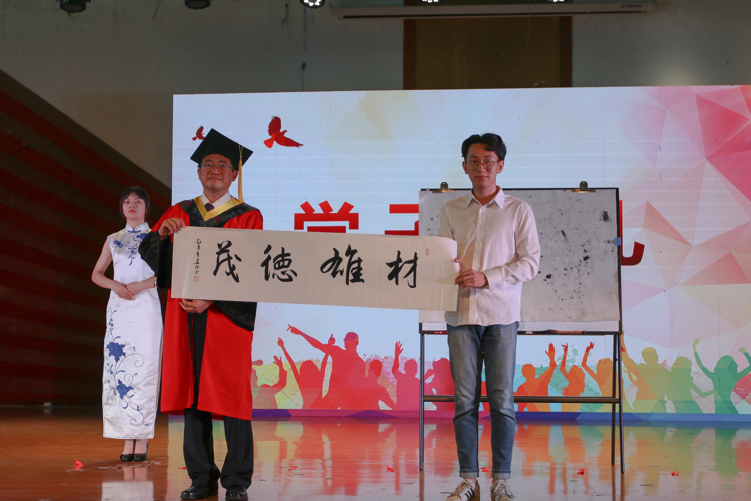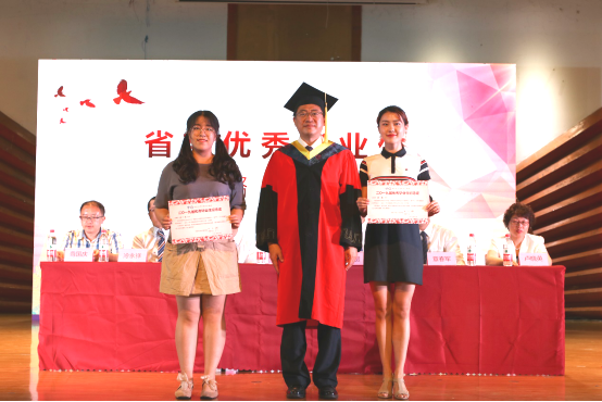 章春军副书记宣读优秀毕业生名单,朱旻昊院长为省级毕业生颁发纪念证书。李涛副院长和冷永祥副院长为校级优秀毕业生代表颁发纪念证书。