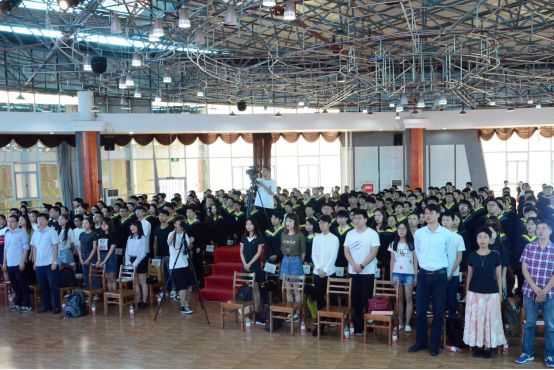典礼开始,奏唱国歌,庄严肃穆的国歌在礼堂回荡,2019届全体本科毕业生起立、奏唱国歌,怀着毕业的喜悦、怀着对祖国的热爱,怀着即将为祖国贡献一己之力的激动。