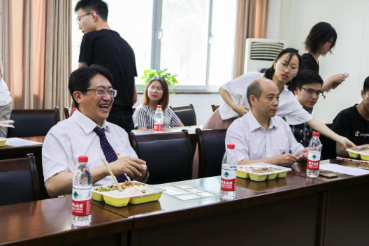 会议开始,朱旻昊院长对举办本次座谈会初衷进行了介绍。他希望同学们注重仪式,诸如毕业典礼、合影留念之类的仪式,恰恰记录了每个同学最美的芳华。接着,他结合自身经验,向同学们展望美好未来,鼓励同学们肩负使命、勇担责任。他强调大学毕业只是一个新起点,他希望在座的党员同学心怀天下,以党之名,为实现中华民族伟大复兴而奋斗。最后,朱院长语重心长地嘱咐毕业生同学们说:“今日看料