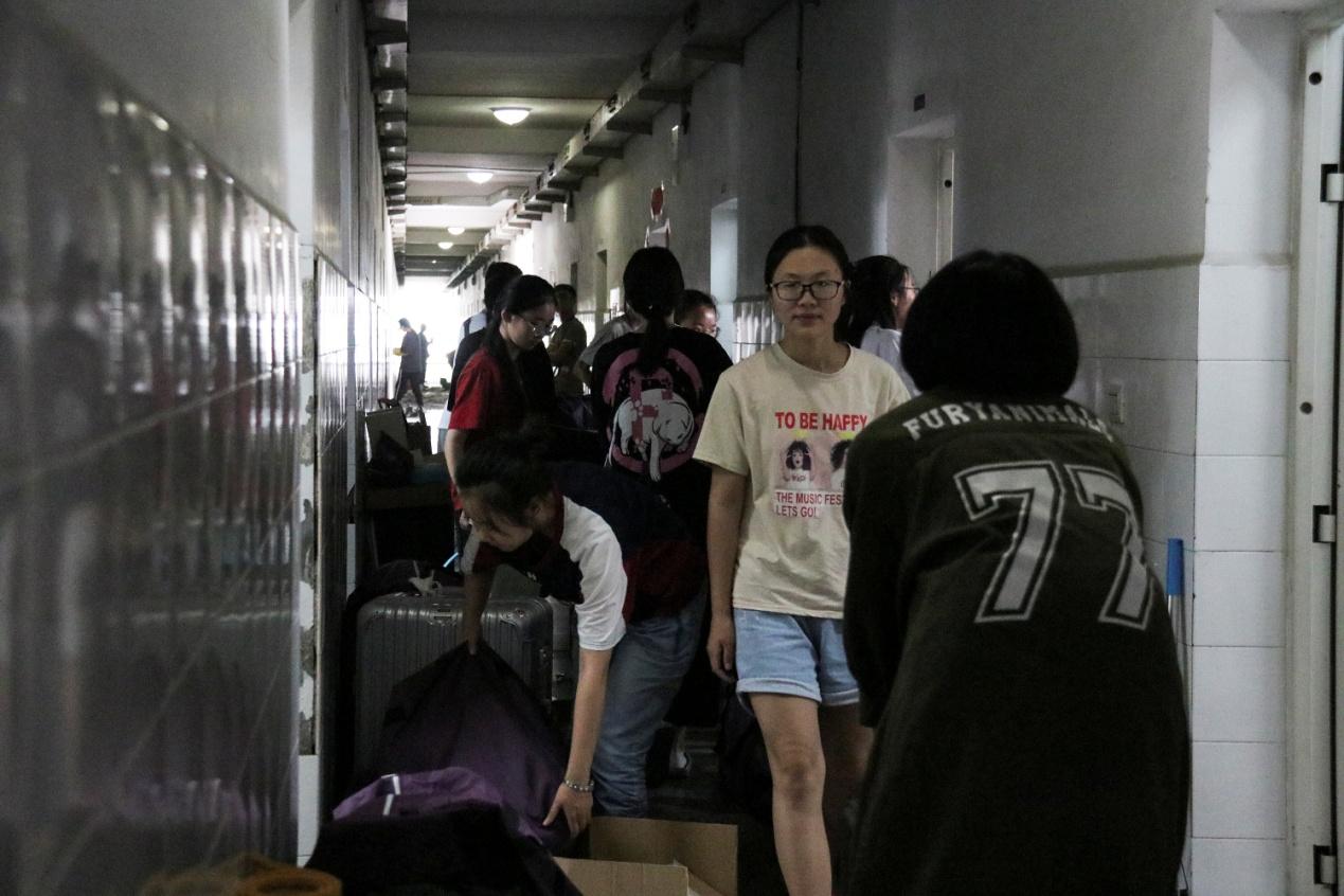 同学们将行李暂时放置于楼道内,8:50,高分子二班的同学们将行李放进自己的新寝室,率先完成搬迁。9:20第一批搬迁基本完成,同学们陆续地开始运送寝室中的最后的小物件。9:30第一批搬入正式结束。