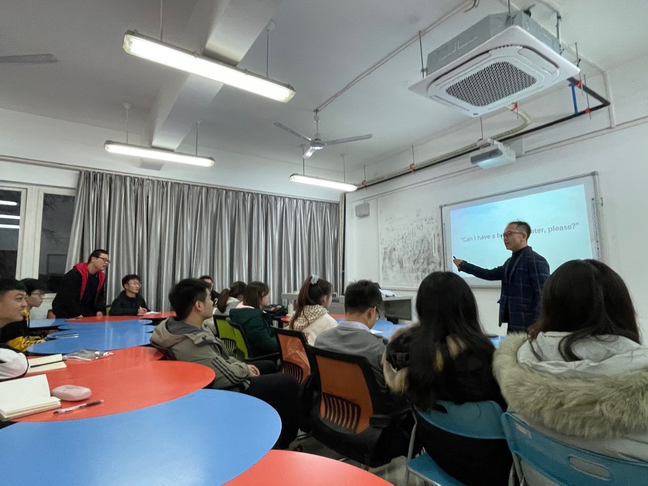 任军老师用他丰富的国外学习生活经历带领同学们拓展视野,引导同学们培养自己的国际竞争力,让学习英语不只是一种考试的任务,更是一种兴趣和修养,更好的适应全球化的新时代,做有国际视野、胸怀天下的新时代大学生。