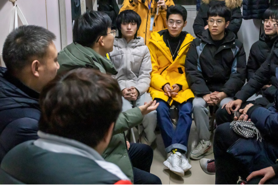 为了方便交流,走访的老师们和同学们齐聚一间寝室,为这次跨年增添了许多热闹与欢快。