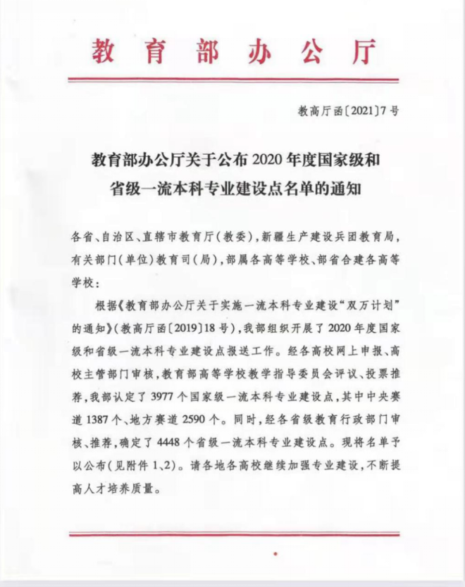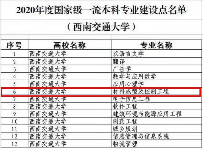 近日,教育部公布了2020年度国家级和省级一流本科专业建设点名单,我院“材料成型及控制工程”专业获批国家级一流本科专业建设点,也是我院继“材料科学与工程”专业上2019年度获得国家级一流本科专业建设点之后的第二个专业获批。据悉,此次我校共13个专业获批国家级一流本科专业建设点。至此,我校共有35个专业进入国家级一流本科专业建设点。