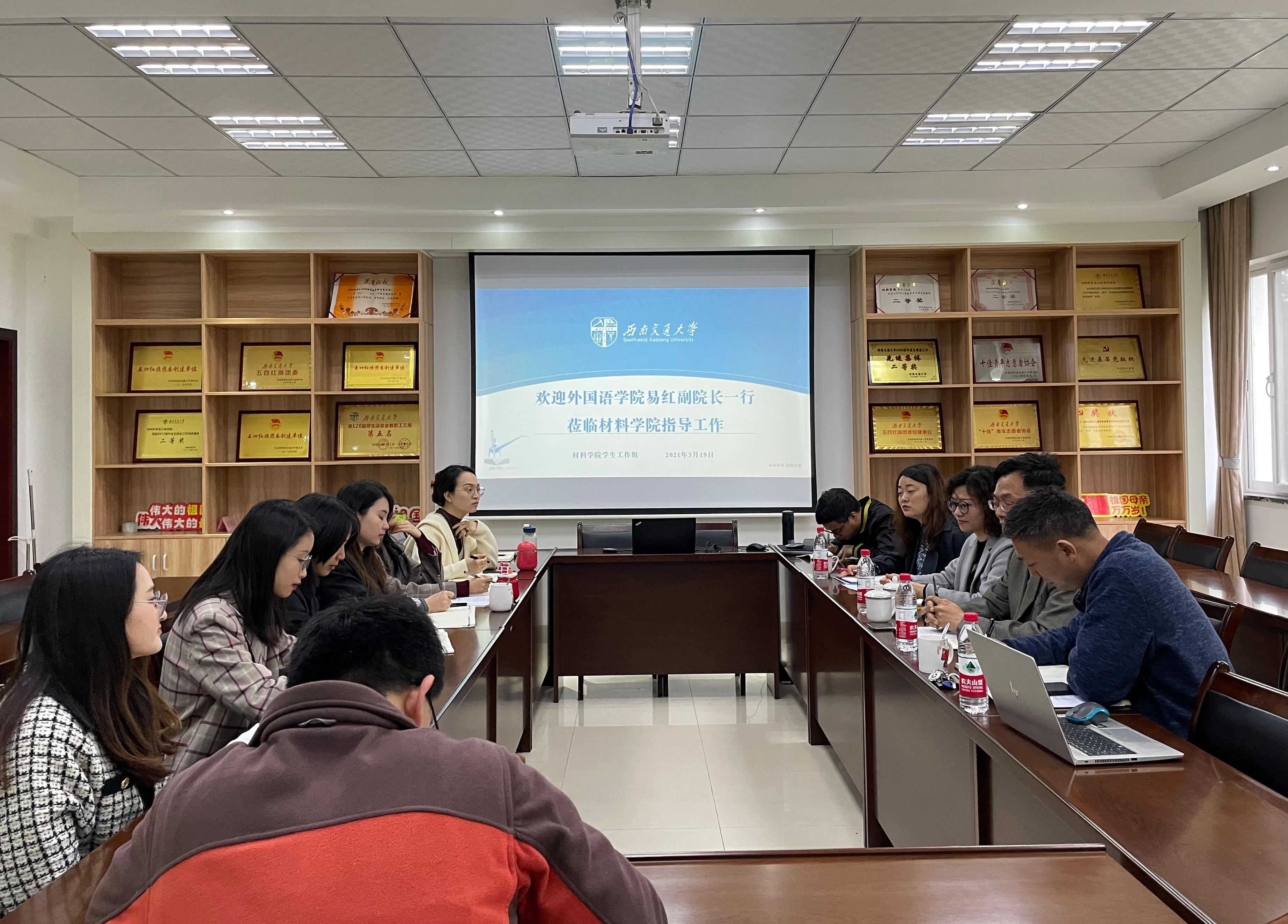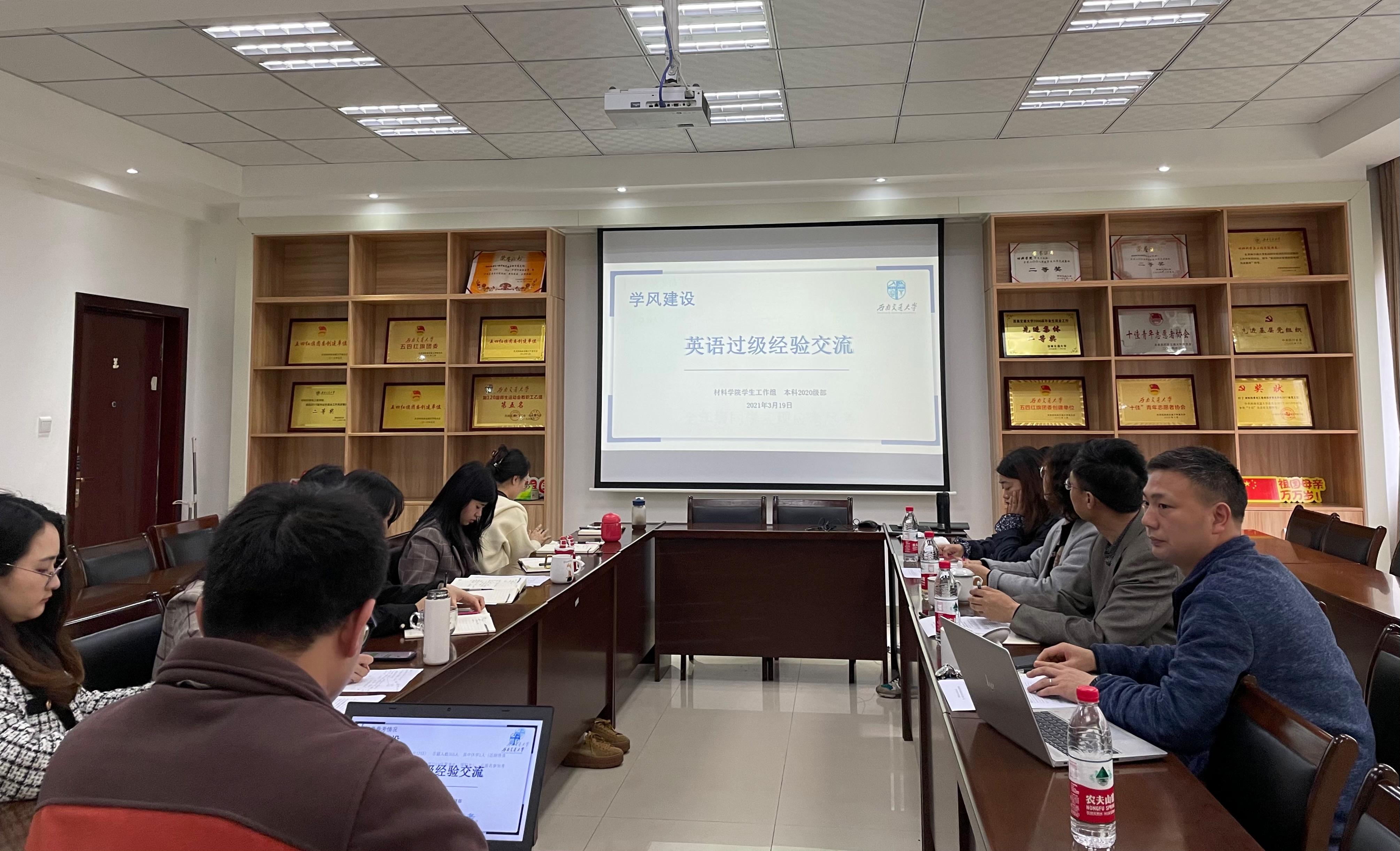 2021年3月19日上午,学院学工组召开本科生英语四六级提升工程专题研讨会,我校外国语学院副院长易红、工程英语系副系主任李捷、第一教研室主任陈芳应邀参加研讨活动,学院党委副书记、纪委书记、学生工作组组长章春军和全体本科生辅导员参加了会议。
