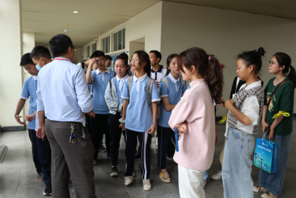 王良辉老师为中学生们现场科普了金相样品制备相关知识,分组带领他们进入比赛和评分现场,近距离观摩大学生专业技能比赛。“祖国未来们”对材料专业表现出浓厚的兴趣,对大学生活产生无限憧憬。