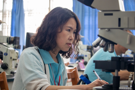 下午4点45分,八组复赛全部顺利完成。每组比赛结束后,选手提交的样品统一送至评分室,由评委在显微镜下进行评分。下午三点半左右,复赛阶段评分工作也全部结束。根据赛事规程,经过紧张的成绩统计、排名,77名选手脱颖而出,晋级决赛。
