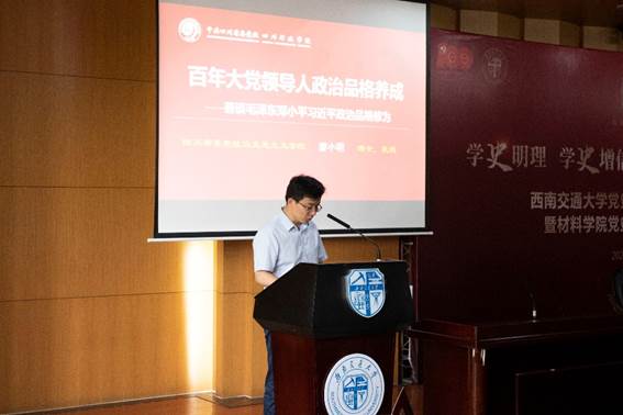 党委书记陈勇、副书记章春军、师生党员以及来自力学、土木、机械学院的学生代表等共计230余人参加学习。中共四川省委党校教授、马克思主义学院副院长、四川省第十三批学术和技术带头人后备人才廖小明博士应邀作“百年大党领导人政治品格的养成”专题报告。本次报告会由党委宣传部和今日看料