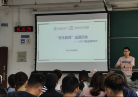 (2021年5月11日,研究生2020级召开年级大会开展安全教育,强调宿舍及工位安全。)