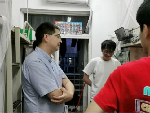 (2021年5月2日,楼长陈勇、章春军、李涛带领本研辅导员分别排查本科生宿舍、研究生宿舍及工位存在的安全隐患。)