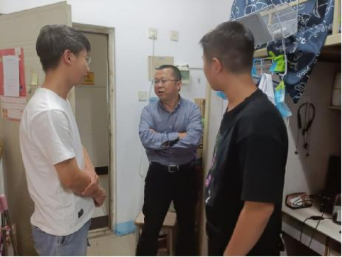 (2021年5月以来,副楼长黄德明、许欢多次走访学生宿舍,加强与毕业生之间的沟通交流,舒缓毕业压力。)
