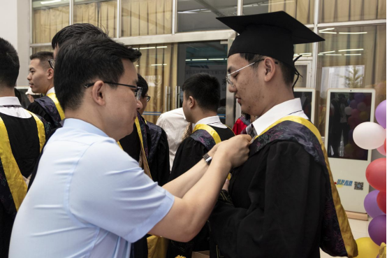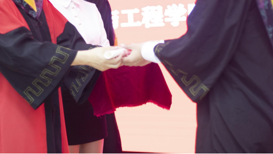 院长、学位评定分委员会主席、主礼教授朱旻昊为他们逐一拔穗,200多名毕业生,200多次握手,200多次拨穗,每一个瞬间都将定格,在记忆的长河里熠熠生辉。授位仪式神圣而庄严,标志着大学生活圆满结束。拨穗正冠,代表稻穗或麦穗成熟,象征学子们已学有所成,即将展翅高飞,同时也寓意学子们在岁月的征程中行稳致远。