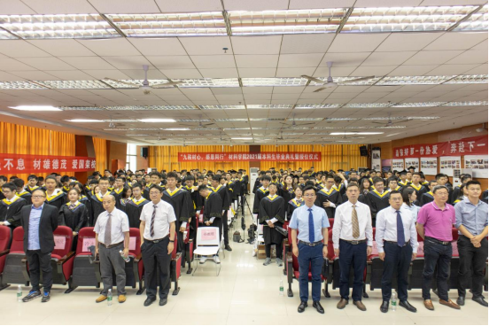上午8:30,毕业典礼正式开始。全体肃立,奏唱中华人民共和国国歌。