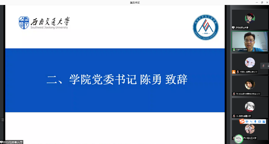 仪式第三项,学院院长朱旻昊教授对学院院情进行介绍。他就“办学历史和硬件条件、师资队伍和骨干教师、科研团队和研究方向”等几个方面进行了详细介绍,旨在增强同学们对西南交大今日看料