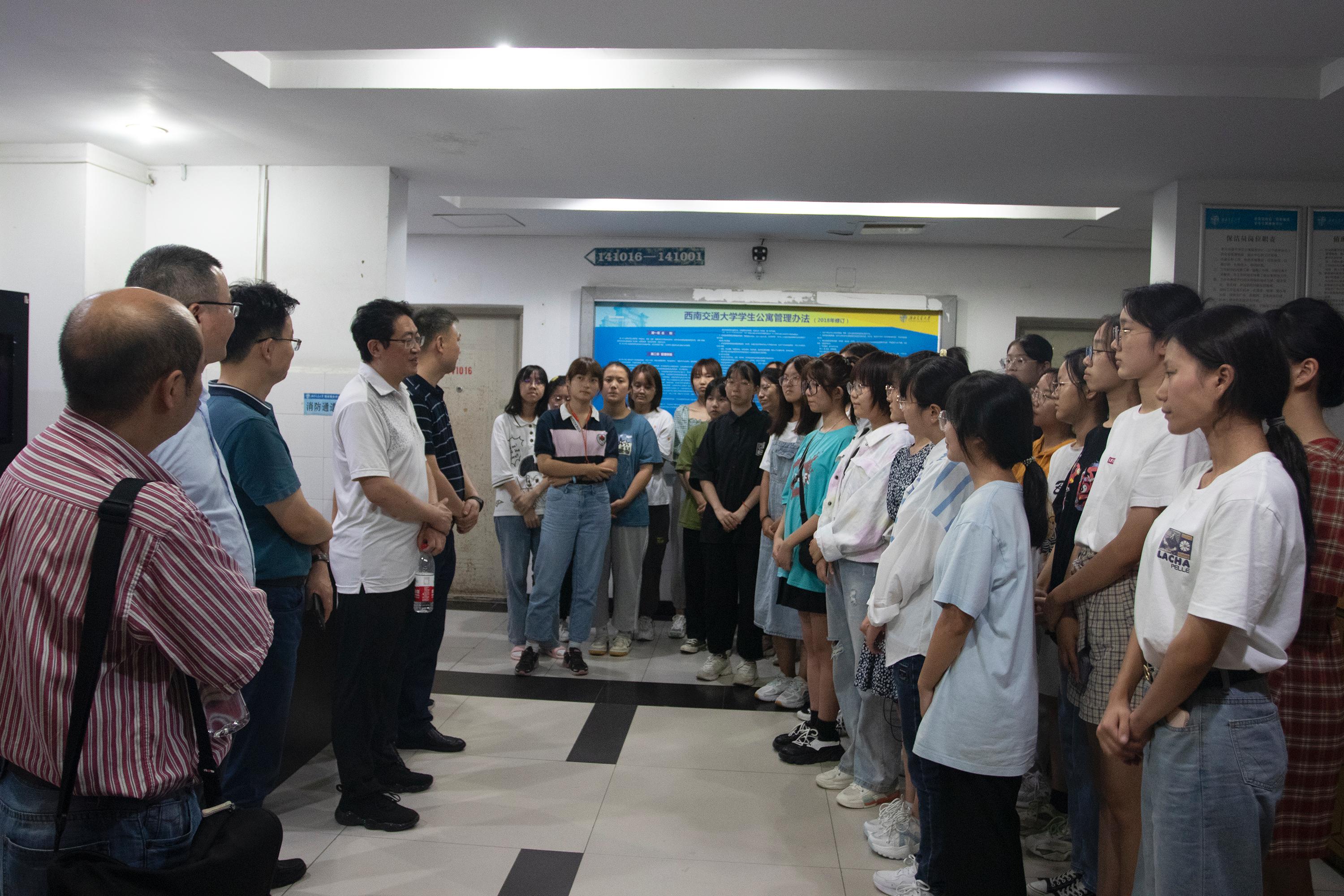 各位楼长深入犀浦校区学生公寓专门看望慰问各位本科新同学。院长朱旻昊、党委书记陈勇、副院长李涛、党委副书记章春军、工会主席王良辉、材料先进技术教育部重点实验室副主任杨维清、团委书记黄德明及2021级新生辅导员许欢、董海霞等十余位楼长逐一走访宿舍、慰问全体新生。