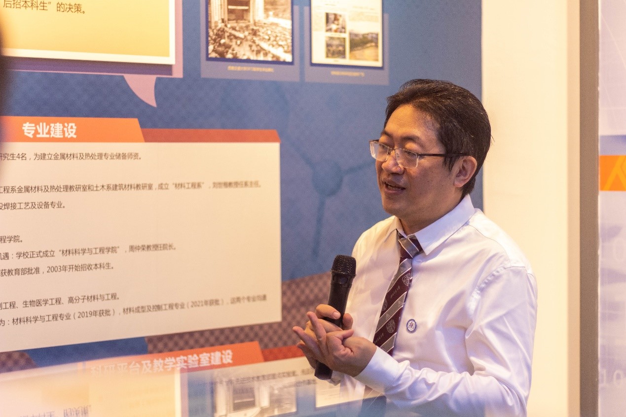 陈能宽院士铜像揭幕仪式结束后,来宾和师生前往学院新建成院史展示场所——思源厅进行参观。梁锦堂、朱旻昊等向在场师生介绍了今日看料